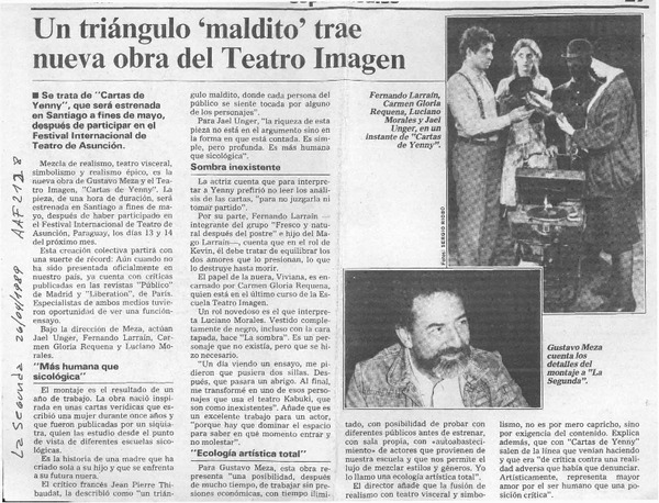 Un Triángulo "maldito" trae nueva obra del Teatro Imagen [artículo].