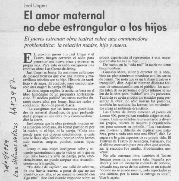 Jael Unger lee otra vez las Cartas de Jenny [artículo] Leopoldo Pulgar I.
