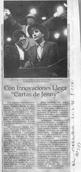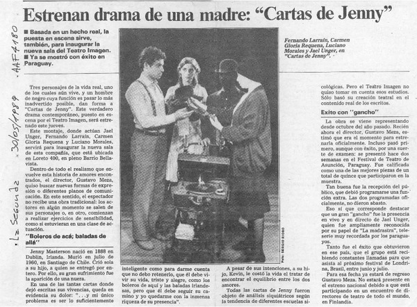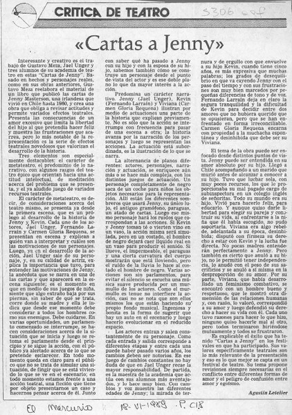 "Cartas de Jenny" vuelve a la escena chilena [artículo].