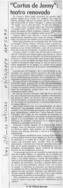 "Cartas de Jenny", teatro renovado [artículo] Wilfredo Mayorga.