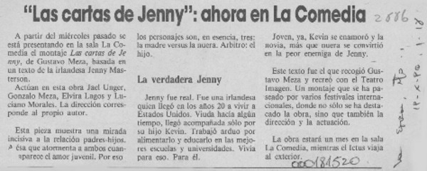 "Las Cartas de Jenny", ahora en La Comedia [artículo].