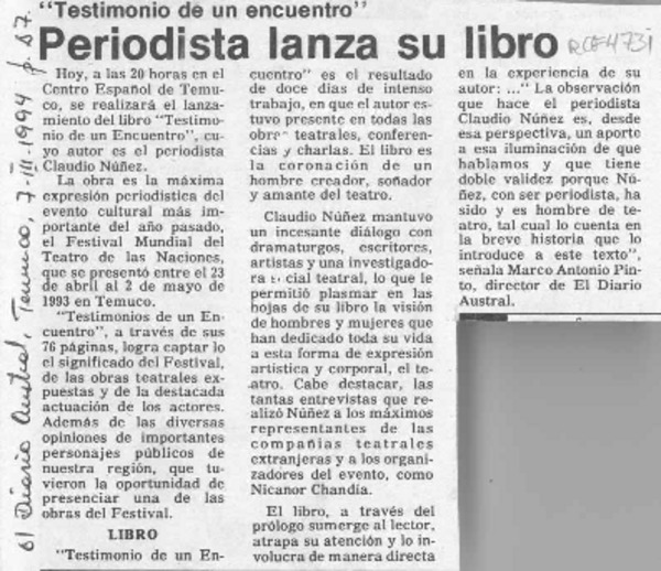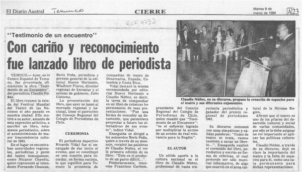 Con cariño y reconocimiento fue lanzado libro de periodista [artículo].