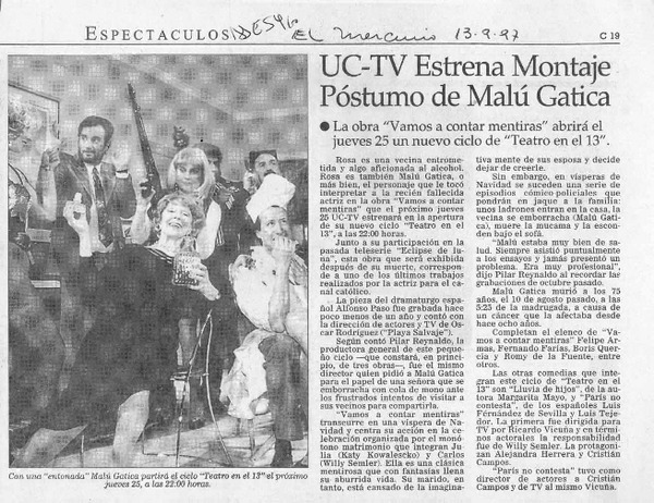 UC-TV estrena montaje póstumo de Malú Gatica [artículo].