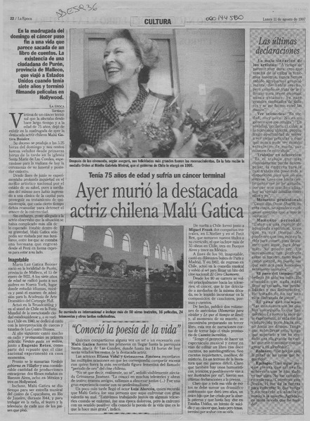 Ayer murió la destacada actriz chilena Malú Gatica [artículo].