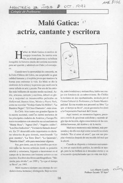 Malú Gatica: actriz, cantante y escritora [artículo] Luis Alberto Castillo.