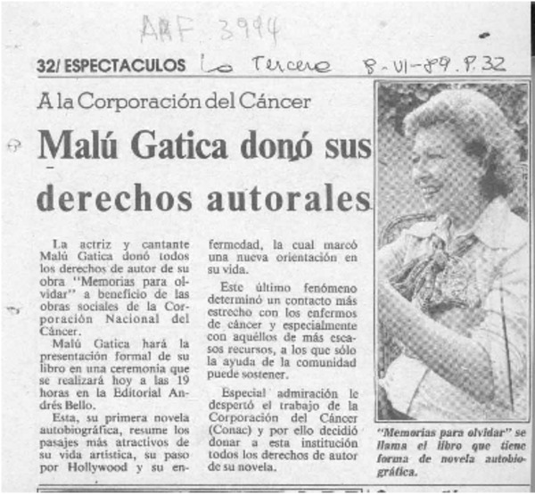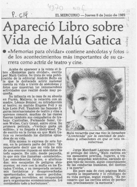 Apareció libro sobre vida de Malú Gatica [artículo].
