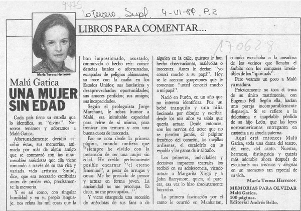 Malú Gatica una mujer sin edad [artículo] María Teresa Herreros.