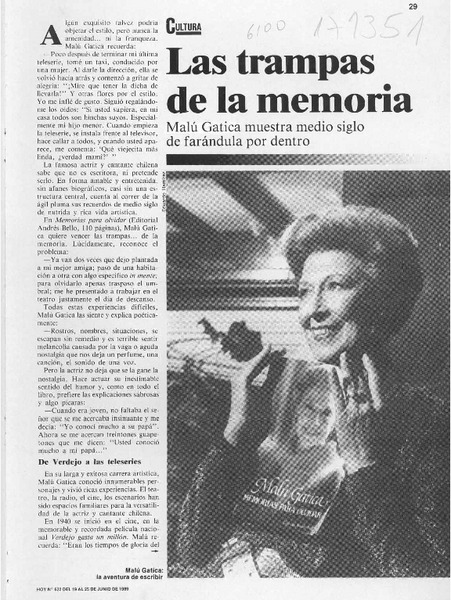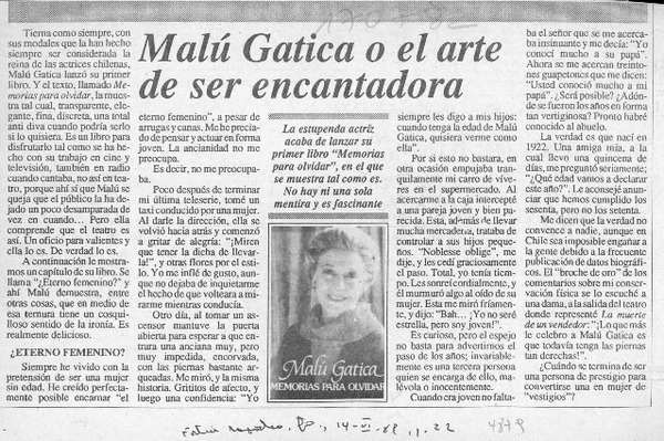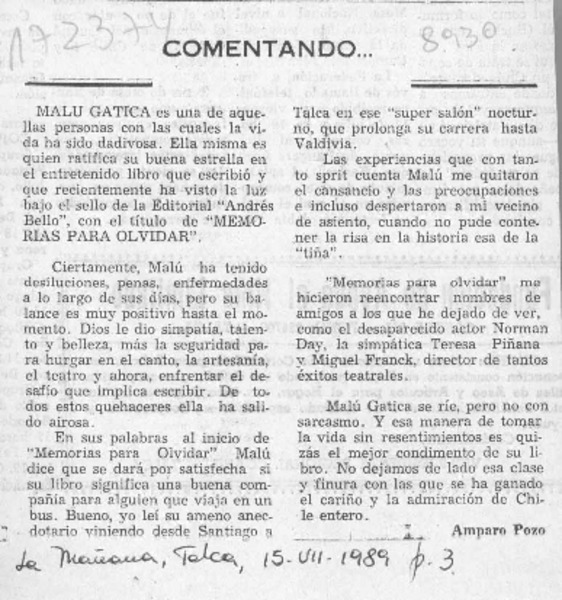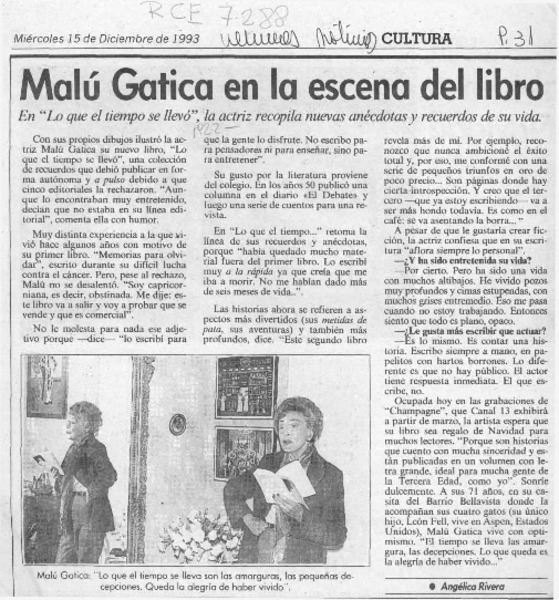 Malú Gatica hace recuerdos [artículo] Wellington Rojas Valdebenito.
