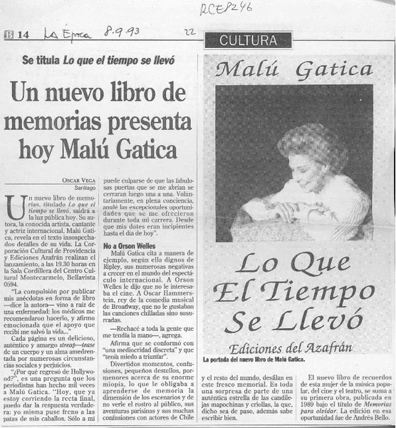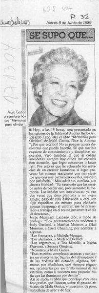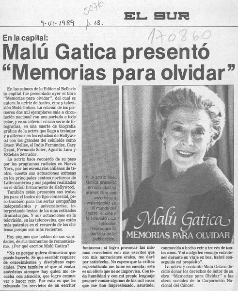 Malú Gatica presentó "Memorias para olvidar" [artículo].