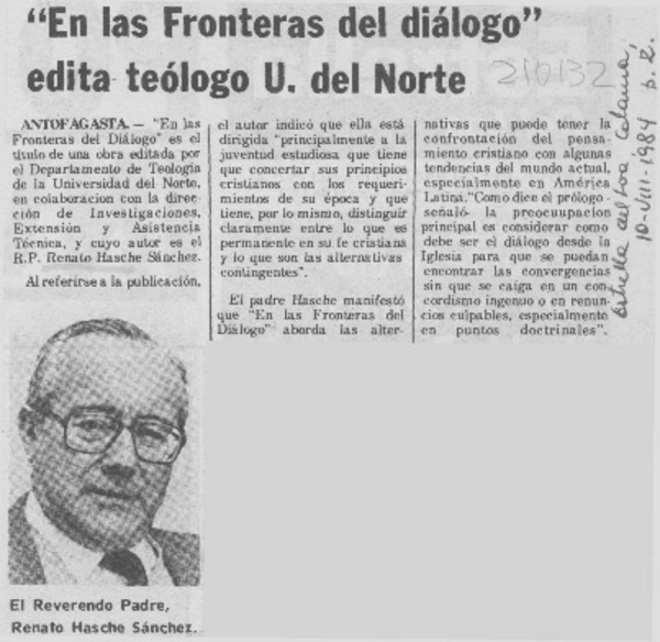 "En las fronteras del diálogo" edita teólogo U. del Norte [artículo].