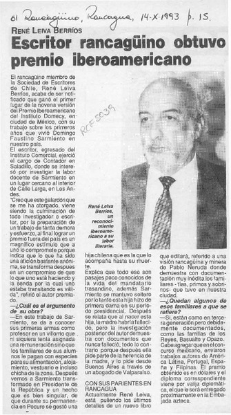 Escritor rancagüino obtuvo premio iberoamericano [artículo].