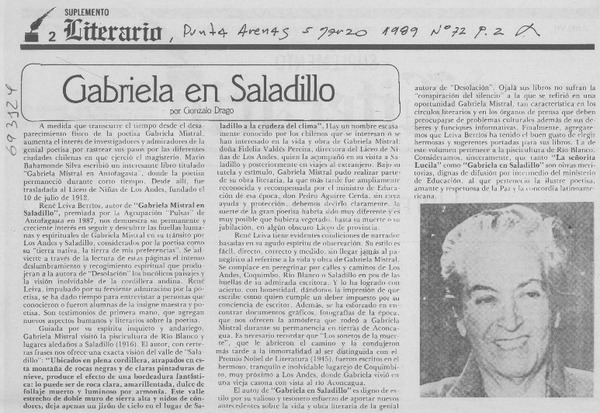 Gabriela en Saladillo [artículo] Gonzalo Drago.