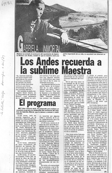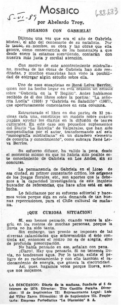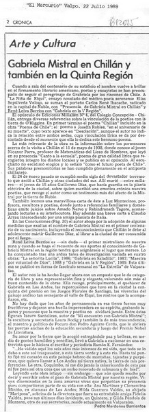 Gabriela Mistral en Chillán y también en la quinta región [artículo] Pedro Mardones Barrientos.