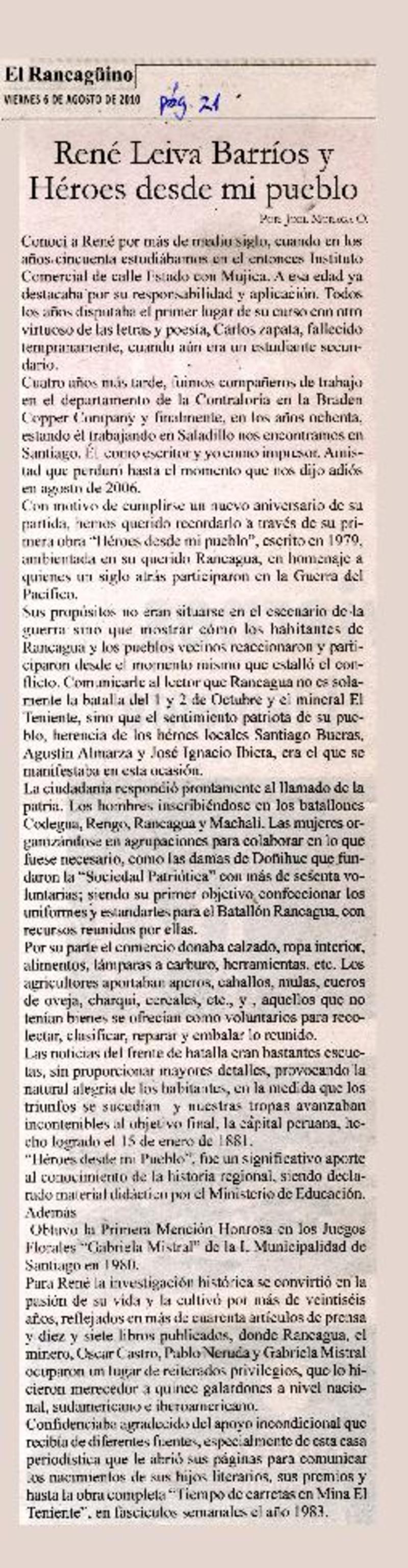 René Leiva Barríos y héroes desde mi pueblo [artículo] Joel Moraga Orellana.