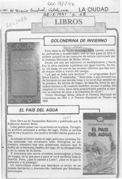 Balcells, Jacqueline - SILVA, VICTOR DOMINGO - GOLONDRINA DE INVIERNO - País del agua, el