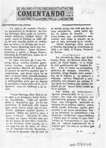 Glorias de Víctor Domingo [artículo] Juan Valentino.