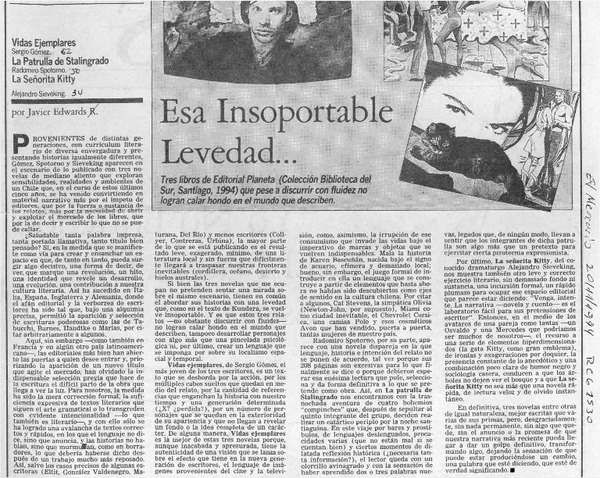 Esa insoportable levedad -- [artículo] Javier Edwards R.