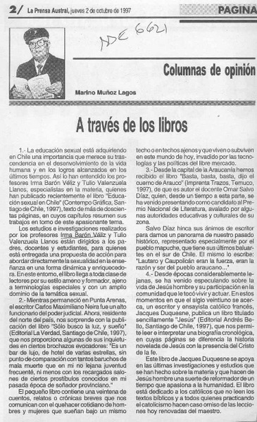 A través de los libros [artículo] Marino Muñoz Lagos.