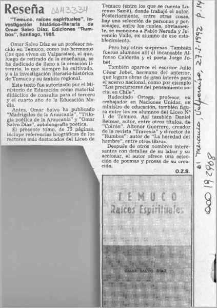 SALVO DIAZ, OMAR - TEMUCO, RAICES ESPIRITUALES