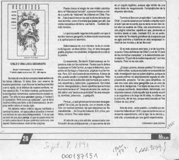 Chile o una loca geografía [artículo] Fernando Quilodrán.