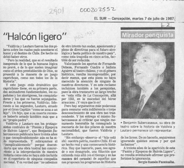 "Halcón Ligero" [artículo] Sergio Ramón Fuentealba.