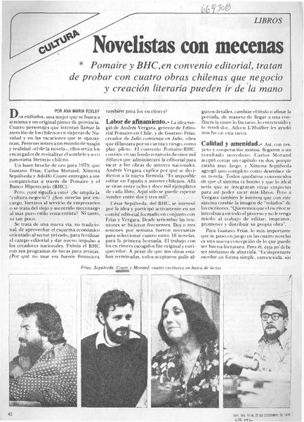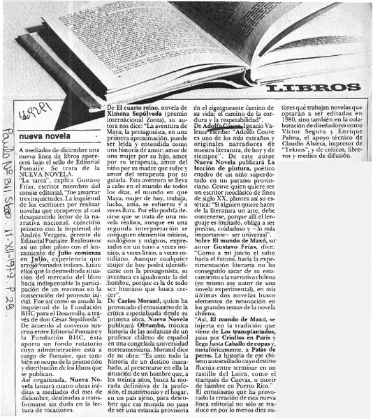 Sepúlveda, Ximena - Morand, Carlos - Mundo de Maxó - Frías, Gustavo - Couve, Adolfo - Autores chilenos - Asunto de familia - Cuarto reino - Ohtumba - Lección de pintura - Montero Abt, Antonio