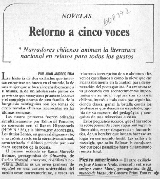 Retorno a cinco voces [artículo] Juan Andrés Piña.