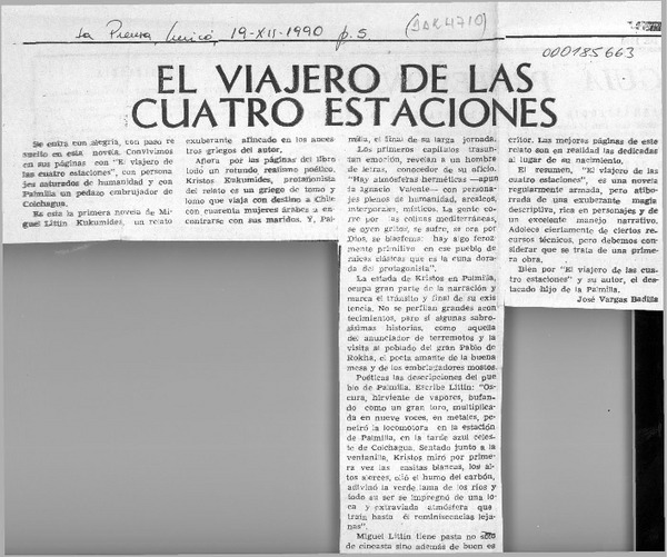 El viajero de las cuatro estaciones [artículo] José Vargas Badilla.