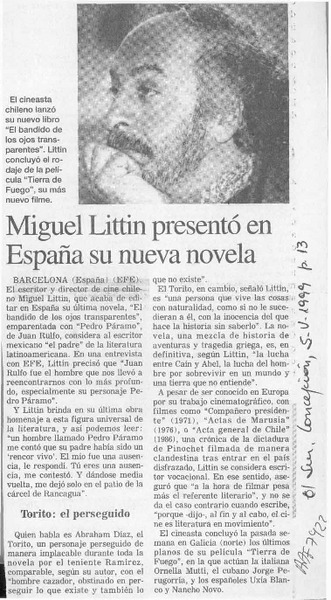 Miguel Littin presentó en españa su nueva novela [artículo].