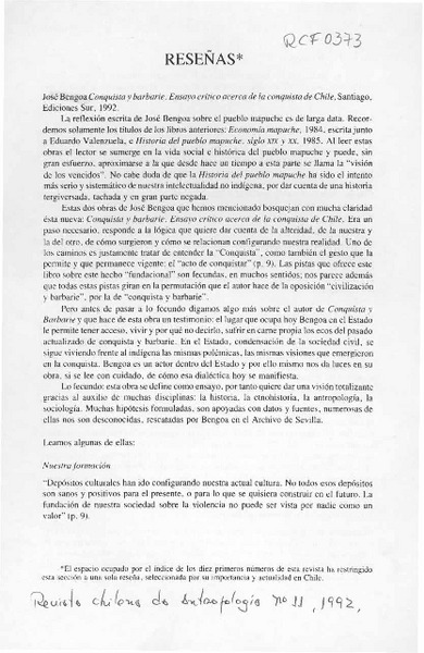 Autores chilenos - Autores españoles - BENITEZ, J. J. - BENGOA, JOSE - CONQUISTA Y BARBARIE - GLORIA DEL OLIVO