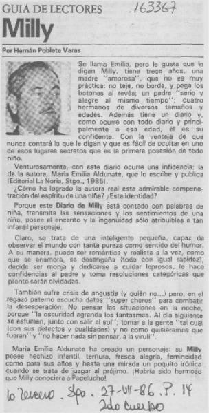 Milly [artículo] Hernán Poblete Varas.