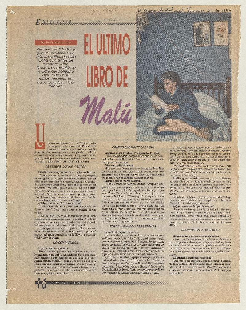 El último libro de Malú [entrevista] [artículo] : Betty Kretschmer.