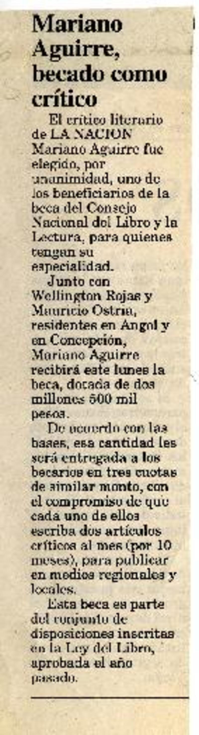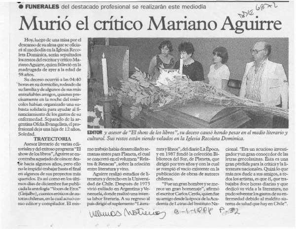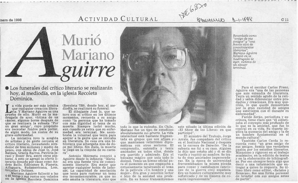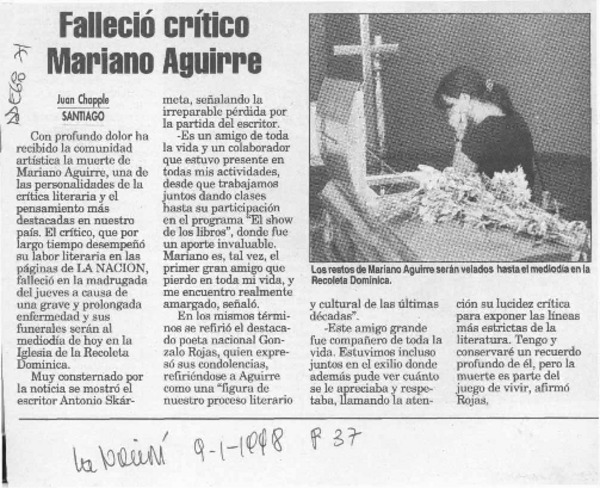 Falleció crítico Mariano Aguirre [artículo] Juan Chapple.