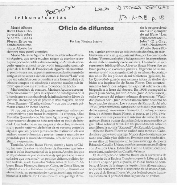 Oficio de difuntos [artículo] Luis Sánchez Latorre.