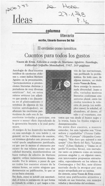Una desigual antología "pecadora", siete cuentos por encargo [artículo] Eduardo Guerrero del Río.