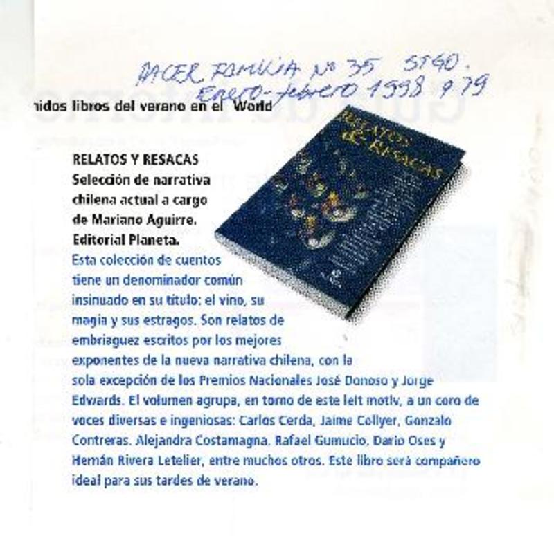 Relatos y resacas : selección de narrativa chilena actual. [artículo]