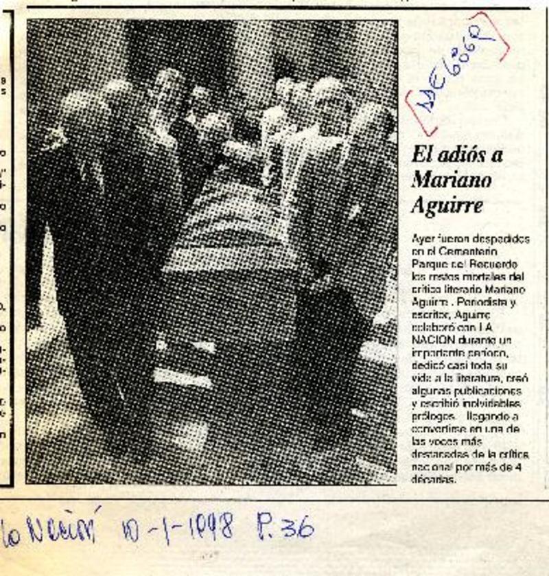 Su familia y las letras dijeron adiós a Aguirre [artículo] E. Orellana.