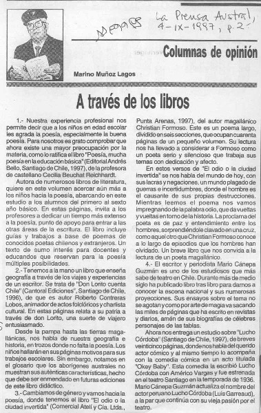 A través de los libros [artículo] Marino Muñoz Lagos.