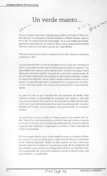 Un Verde manto -- [artículo].