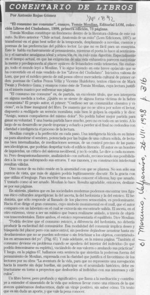 "El consumo me consume" [artículo] Antonio Rojas Gómez.