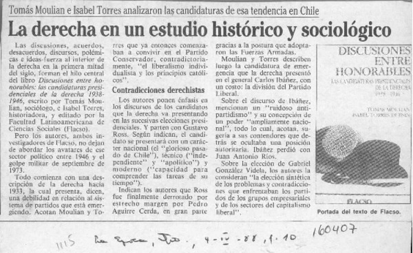 TORRES DUJISIN, ISABEL - DISCUSIONES ENTRE HONORABLES - MOULIAN, TOMAS
