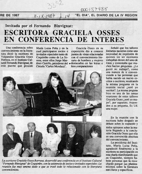 Escritora Graciela Osses en conferencia de interés [artículo].