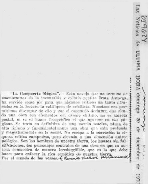Irma Isabel Astorga: "La compuerta mágica" [artículo] Hernán del Solar.