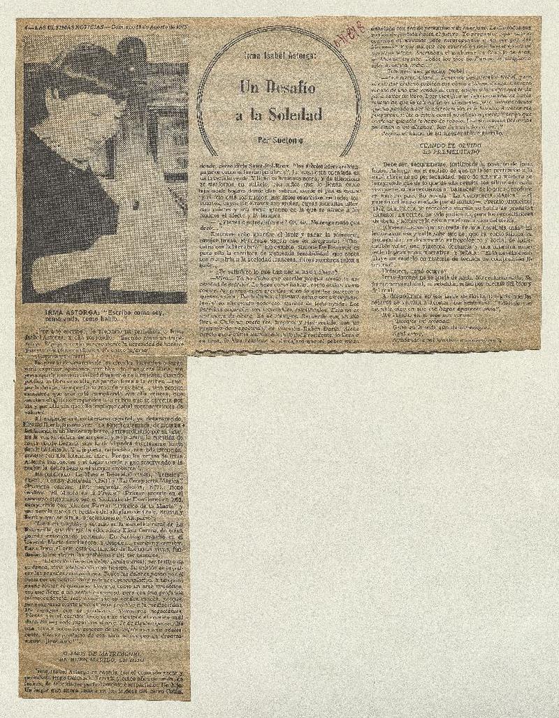 Un desafío a la soledad : [entrevista] [artículo] Suetonio.
