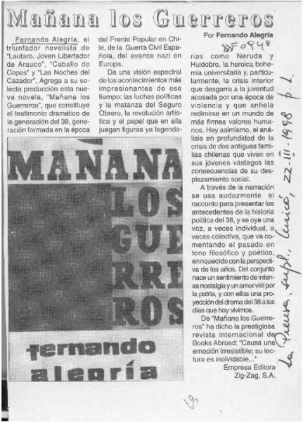ALEGRIA, FERNANDO - MAÑANA LOS GUERREROS