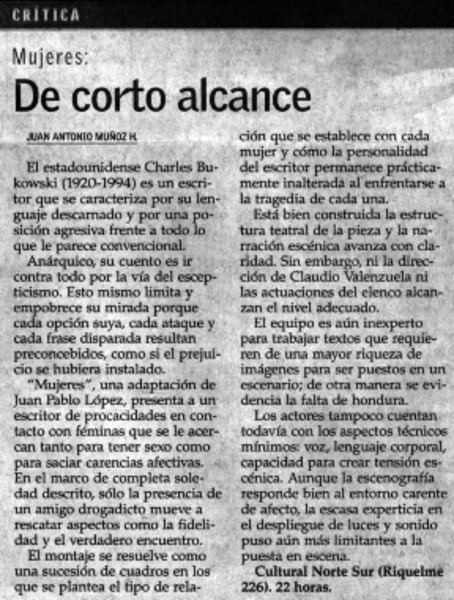 De corto alcance [artículo] Juan Antonio Muñoz H.
