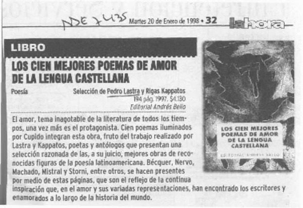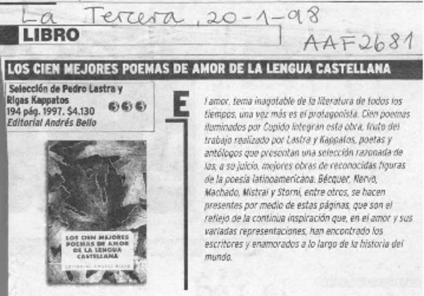 Los Cien mejores poemas de amor de la lengua castellana [artículo].