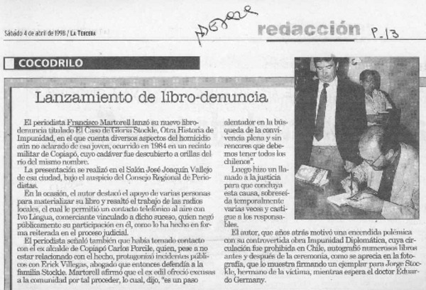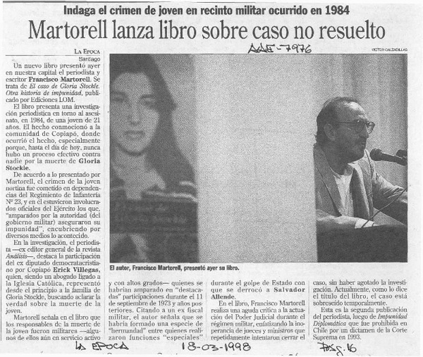 Martorell lanza libro sobre caso no resuelto [artículo].