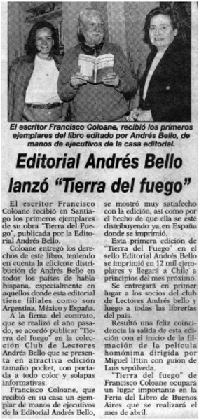 Editorial Andrés Bello lanzó "Tierra del Fuego" [artículo].