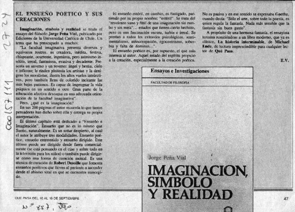 PEÑA VIAL, JORGE - IMAGINACION, SIMBOLISMO Y REALIDAD